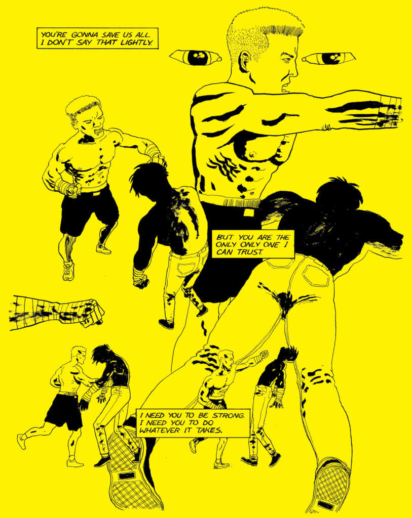 It’s kind of my Terminator 2 cyberpunk/time warping story. It’s pretty different to be playing with these things. But I’m having fun. Formally, I’m trying to connect it to how I perceive manga to read. I want the pages to be turned quickly and be as clear as possible.