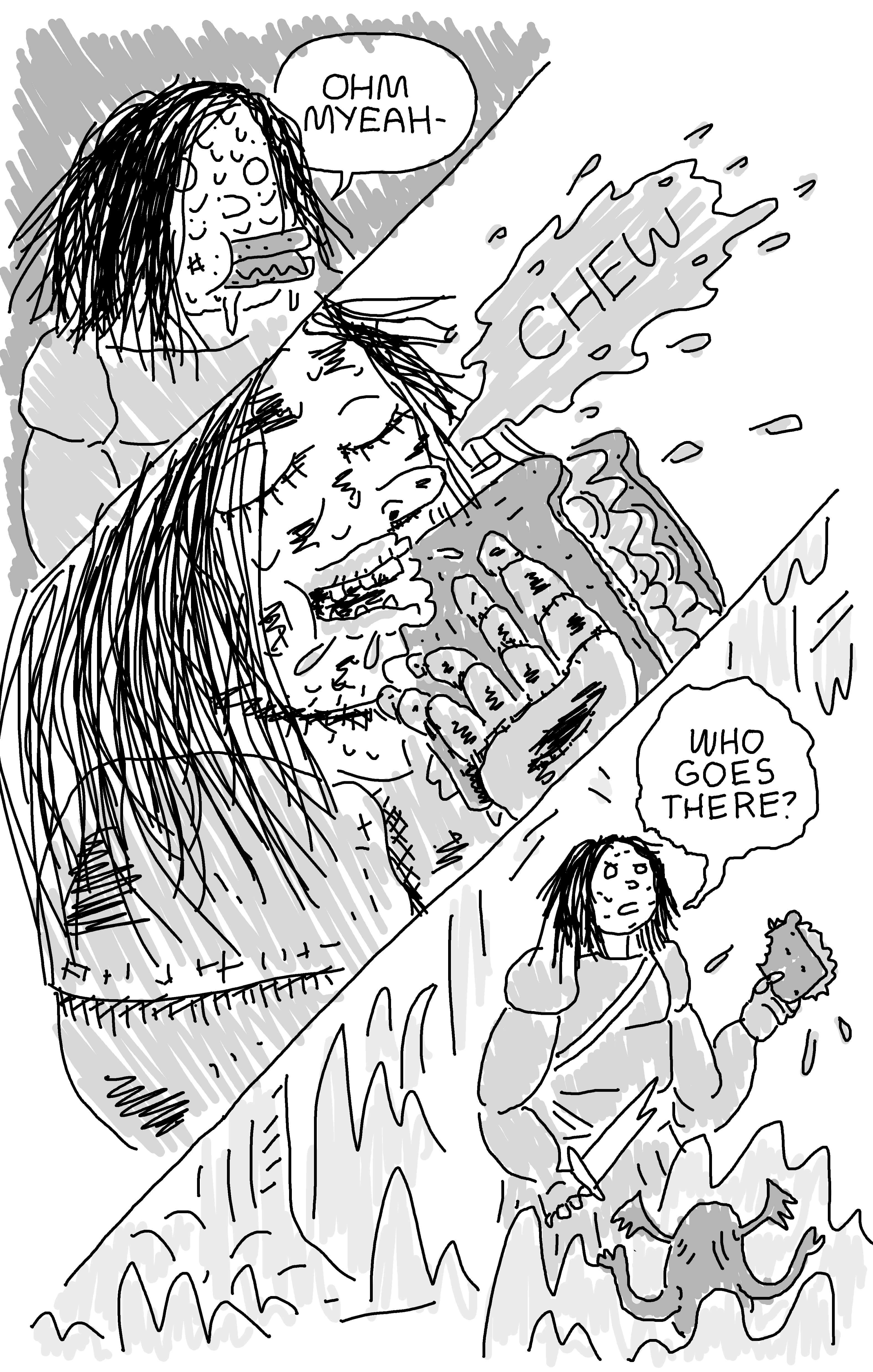 Anna McGlynn has done two backups so far, and it’s somewhat an ongoing story that is really out there and I love it a lot. Hopefully she’ll do another chapter for a future issue. Also, it was really a special feeling to get a drawing of my characters by Sophie Yanow, who is a person that has maybe helped me find my voice in comics more so than any other teacher, mentor, etc. Sophie is kinda my comics hero, so yeah, that was a huge honor.