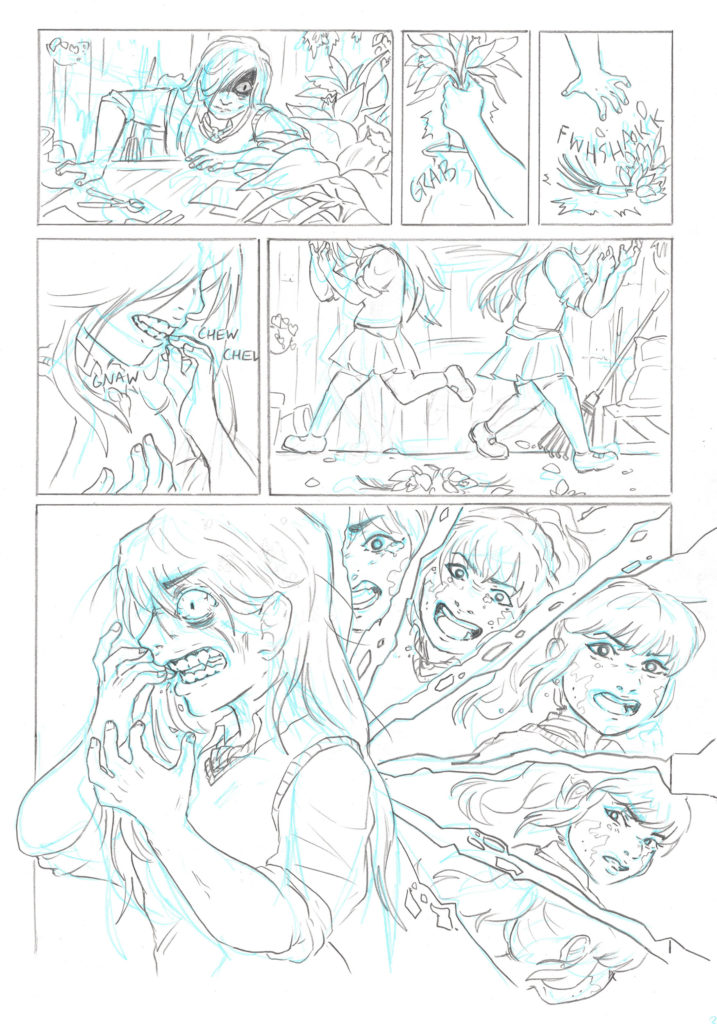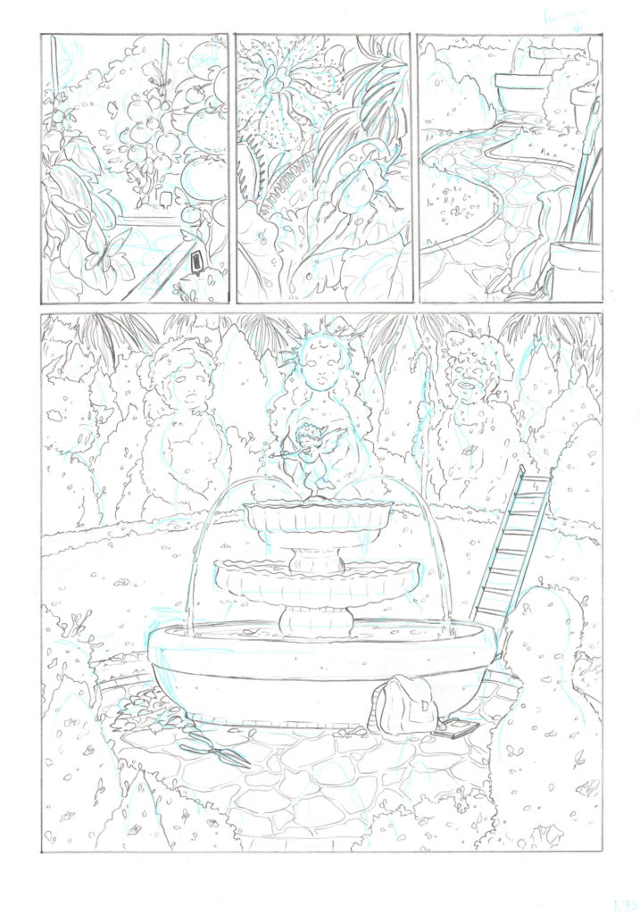 The Greenhouse is a 60-page queer horror comic featuring a messy love triangle, mentions of Greek myth, and murder. Warning for some body horror.