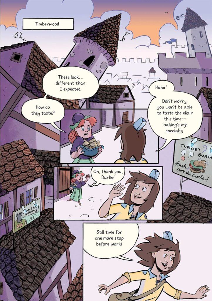 Scullion: A Dishwasher’s Guide to Mistaken Identity by Jarad Greene ’17 released with Oni Press! Scullion was Jarad’s thesis project while attending The Center for Cartoon Studies (CCS) MFA program. In celebrity-obsessed Timberwood Village, the great warrior Riqa is an icon who’s about to throw the wedding of the century, and local teens Darlis and Mae are just two humble dishwashers. Until, that is, Riqa mysteriously disappears and an unsuspecting Darlis is mistaken for her! It seems like an honest mistake, until he realizes that these two troll siblings want to capture and hold him for ransom, with Mae getting caught in the mix-up. To get out of this predicament, these dishwashers will have to get their hands a little dirty. Armed with only their wits and Riqa’s book, The Fair Maiden’s Guide to Eating Your Captor for Breakfast, can Darlis and Mae give their captors a run for their money?