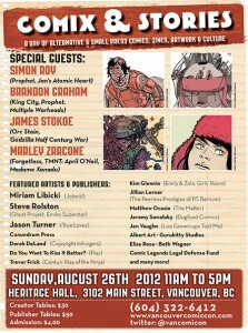 The Vancouver Comicon COMIX and STORIES Featured Artist: The Center for Cartoon Studies alum Jen Vaughn. The convention takes place at Heritage Hall, 3102 Main Street, in Vancouver, British Columbia, Canada.
