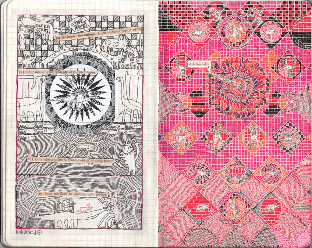 Montebank by D.W. ′12 (Fantagraphics) was included in Best American Comics notables. Mountebank is a systematized sketchbook that tracks the inner workings of an obsessive brain, a book that could only be described as “psychedoolic.” Both meditative and hypnotic, D.W. invites you to get lost alongside anthropomorphic creatures crawling through grid paper labyrinths and in his own brand of whirling dervish mark-making.