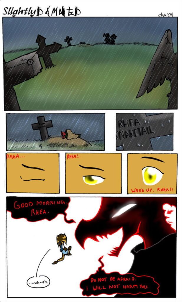 Slightly Damned started in 2004 and continued through her time at The Center to Cartoon Studies to now. Chu posts one color page per week. The fantasy story follows Rhea through Hell after she was murdered in an action-adventure romantic comedy.