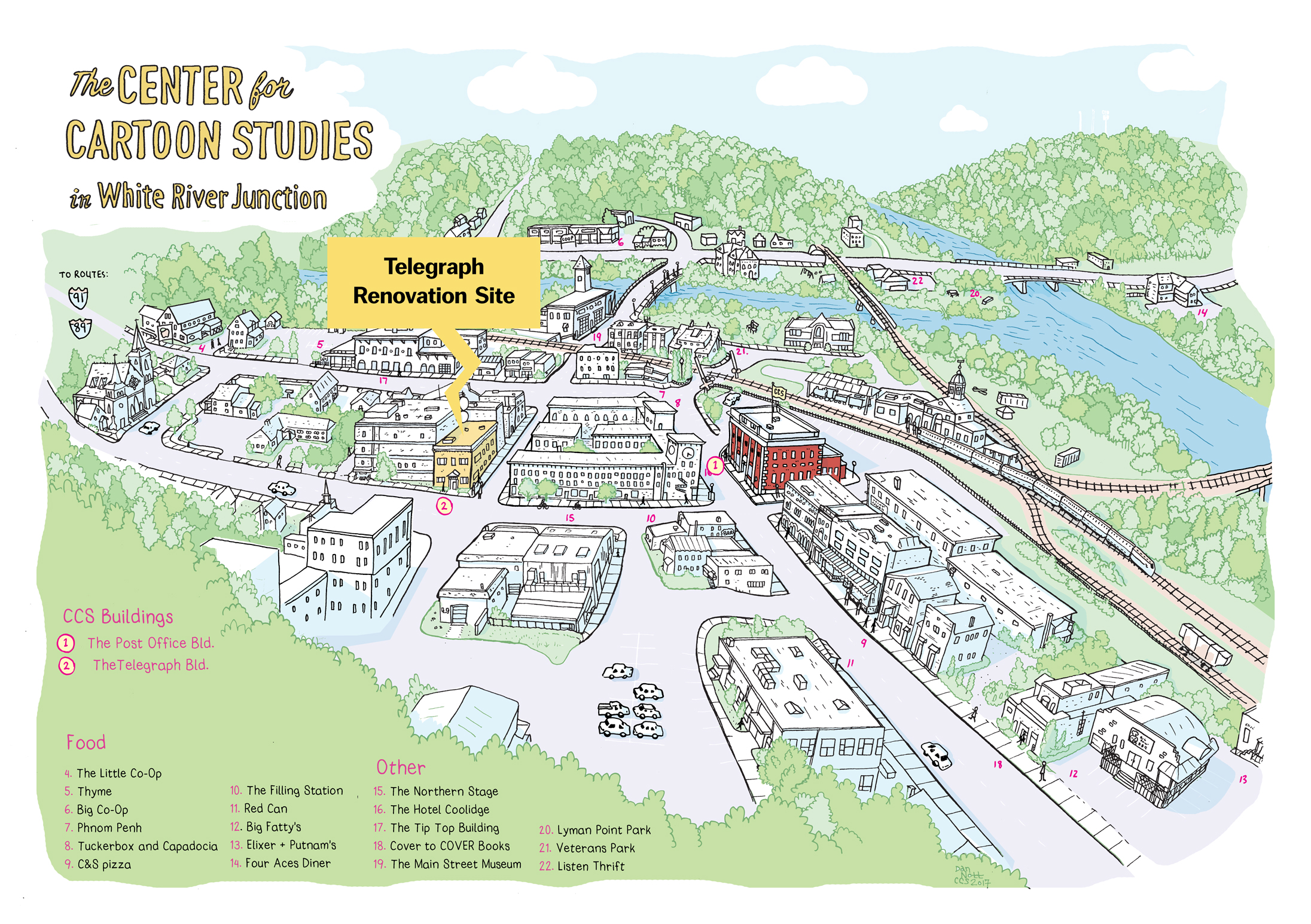 As we celebrate 20 years, The Center for Cartoon Studies (CCS) is undertaking a transformational $3.3 million Campus Renewal Project. This effort will culminate in a two- building historic campus that is fully accessible and climate-resilient-ensuring that CCS can continue to enrich the cultural and economic vitality of the region, serve as a cornerstone of Vermont’s arts ecosystem, and support a community of cartoonists whose work reaches audiences worldwide.