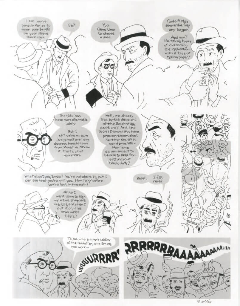 This fall, the third and final volume of Jason Lutes’s epic Berlin trilogy is being released (through Drawn and Quarterly). It is a big accomplishment and rightly deserves some hearty congratulations. To celebrate, Jason’s coworker and fellow CCS teacher Luke Howard ′13 pulled together a super secret project where over of Jason’s peers and students drew their own version of more than the first 6 chapters of Berlin. Keep an eye out online—lots of contributors (159!) have been posting their work, which is especially interesting when they include the original page.