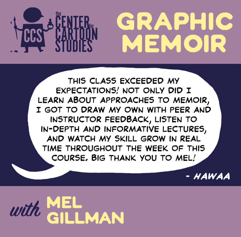 Need that kicker to get started on telling your personal story through comics? Eisner and Ignatz award-nominated graphic novelist Mel Gillman ’12 will walk you through the basics of writing and drawing your graphic memoir — from brainstorming, to scripting, to drawing, to publishing. Topics to be covered include narrative building, developing a unique personal voice and visual style, and effective pitching and publishing practices for graphic memoirs.